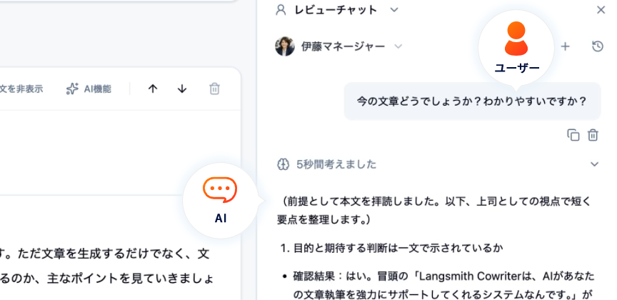 Langsmith Cowriterは、執筆のあらゆる段階に寄り添い、適切な支援を行います。